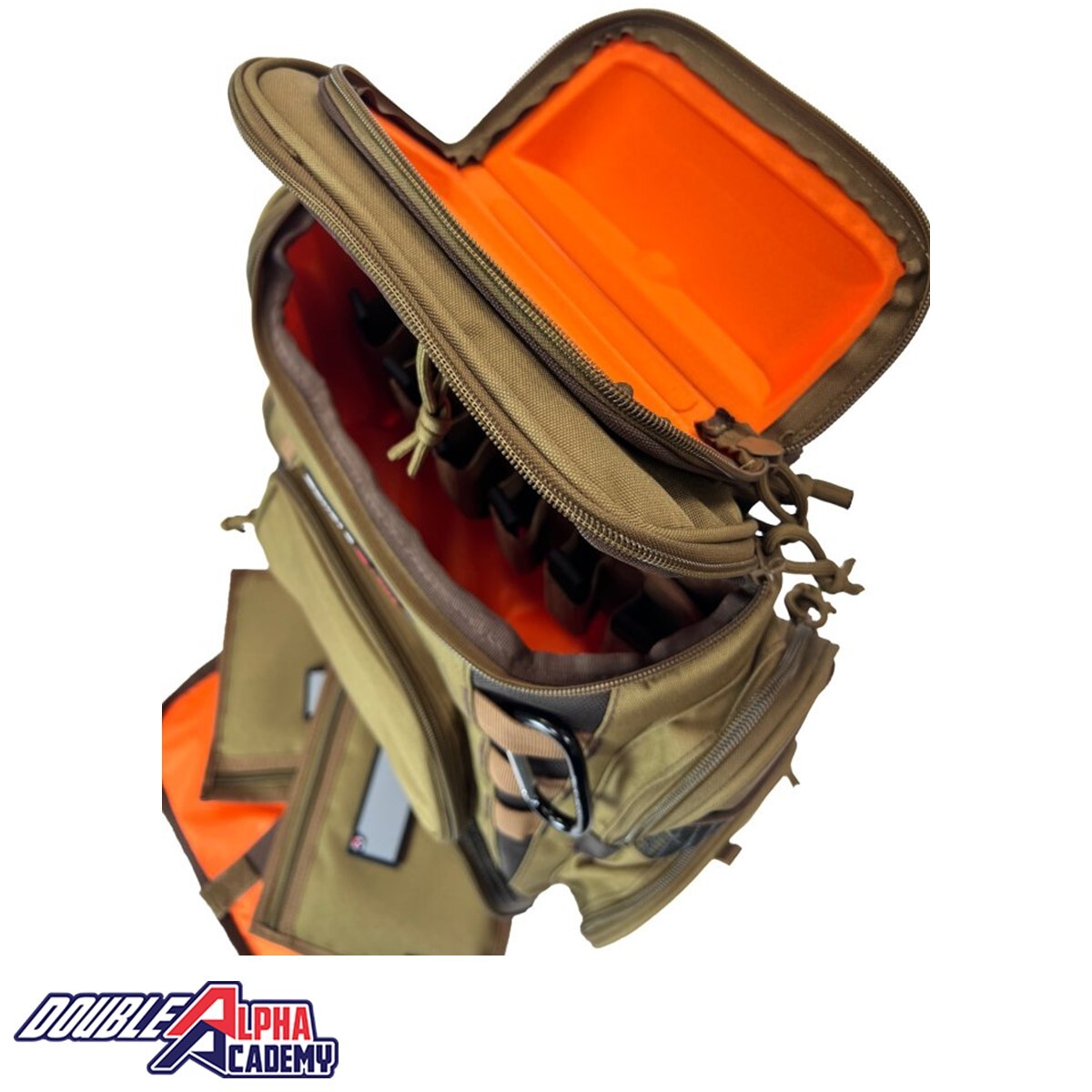 Completing the design are adjustable, well-made shoulder straps with a chest strap for added stability, and a practical comfortable carry handle. The DAA Range Companion Backpack is available in Black with dark silver accents or Flat Dark Earth (FDE) with brown accents, both featuring a vibrant orange internal lining.